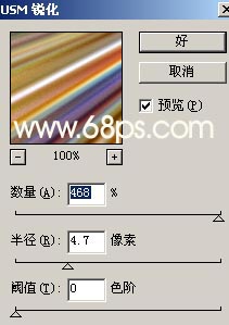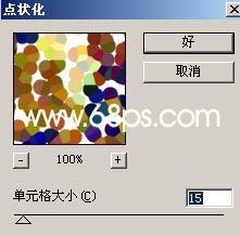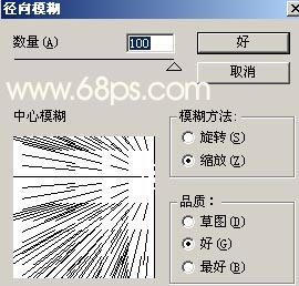 2.按ctrl + j把剛才得到的分層后的圖層復制一份,執(zhí)行菜單:濾鏡 > 像素化 > 點狀化,參數(shù)設置如圖2,確定后執(zhí)行菜單:濾鏡 > 模糊 > 徑向模糊,參數(shù)設置如圖3,確定后再按ctrl + f三次,然后再執(zhí)行菜單:濾鏡 > 銳化 > usm銳化參數(shù)設置如圖4,效果如圖5