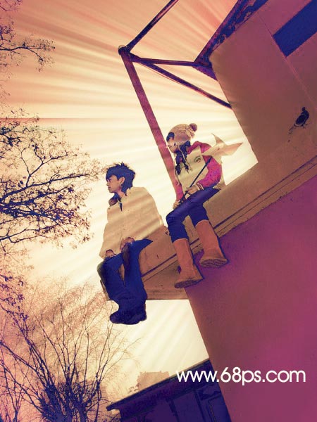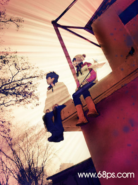 photoshop照片調色教程:添加光照效果。思路:用多種濾鏡效果裝飾好畫面,然后使用圖層及素材疊加來加強圖片的對比及色彩,最后刷上裝飾的筆刷制作出自己的個性圖片。