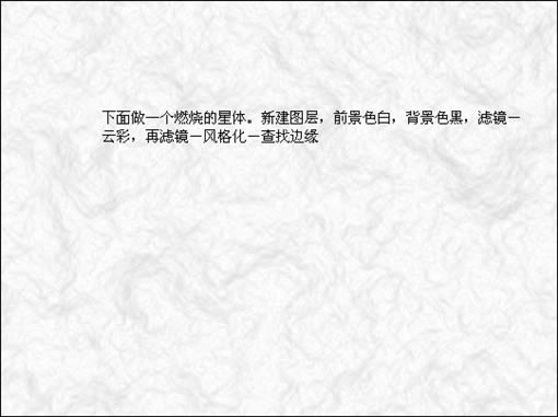 下面做以個燃燒的星體,新建圖層,前景色白,背景色黑,濾鏡—云彩,再濾鏡—風格化—查找邊緣