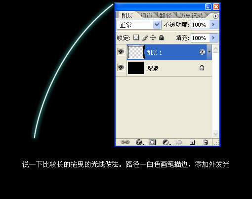 說一下比較長的拖曳光線做法,路徑—白色畫筆描邊,添加外發光。