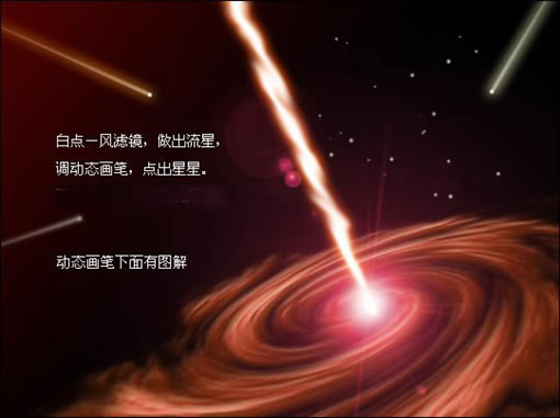 白點—風濾鏡,做出流星,調動態畫筆(動態畫筆下面有圖解),點出星星。