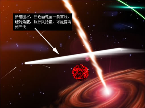 新建圖層,白色畫筆畫一條直線,旋轉角度,執行風濾鏡,可能要兩到三次。