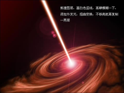 新建圖層,畫白色豎線,高斯模糊一下,添加外發光,扭曲變換,不夠亮就再復制一兩層