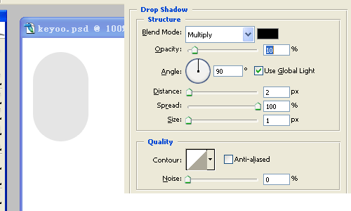 2、為圖層添加圖層樣式:投影,參數如下。