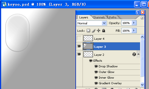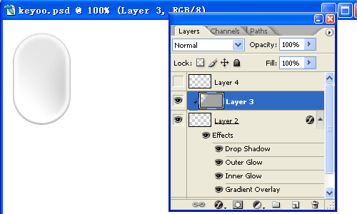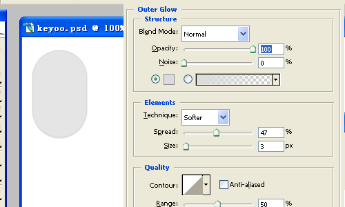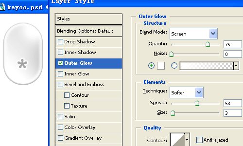 8、理解上面步驟后,繼續為圖形右上角添加白色高光。都沒有問題,那就新建圖層,在鼠標中間偏下的地方,利用自定義形狀工具,畫出特殊的圖案,并繼續添加外發光圖層樣式。