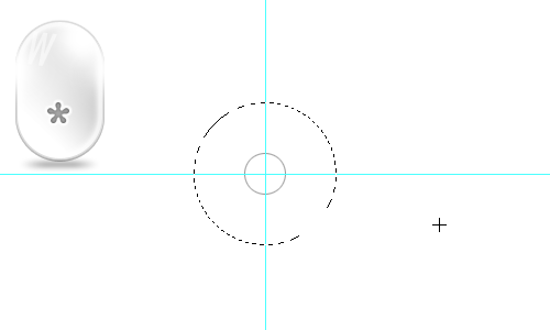 11、進行一次動感模糊,再進行一次高斯模糊,產生了如下漂亮的投影。選擇畫布一個合適的位置,添加兩條參考線,出現交點,作為圓心依據。橢圓選擇工具,shift畫正圓,alt以起點作為圓心,描邊選框。