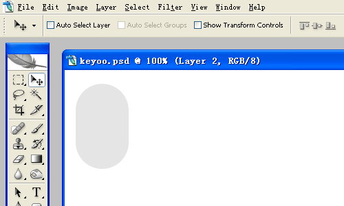 1、打開photoshop后,發現開錯了版本而且是英文版,機器動作慢的原因,我就懶得重新開photoshop cs3了,將就一下。新建尺寸為500*300大小的畫布,利用圓角矩形工具,設置邊角半徑為100px,畫出如下形狀。