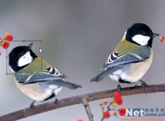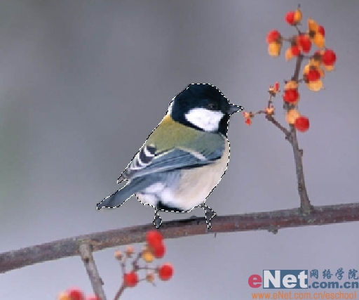 9、用磁性套索工具沿著鳥頭與身體相交的部分勾選出小鳥的頭。