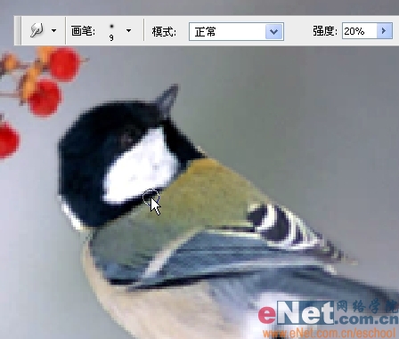 13、選擇涂抹工具,設置如下,將鳥頭與身體接合處輕輕涂抹一遍使之完美接合。下面就可以開始做動畫了。