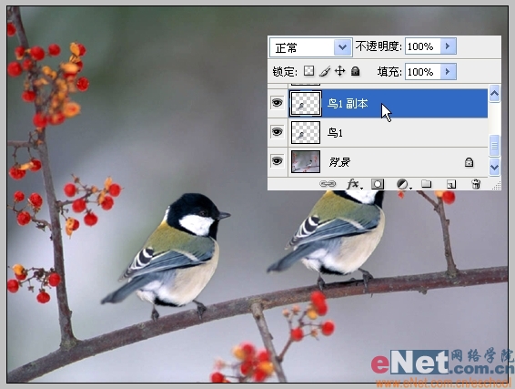 6、將復制出的小鳥命名為“鳥1”,然后ctrl+j再復制一層。