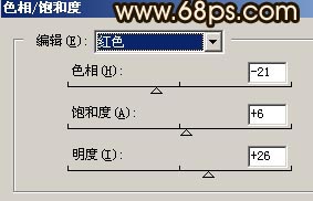 5.創建調整圖層選擇色相/飽和度,參數設置如圖6,效果如圖7