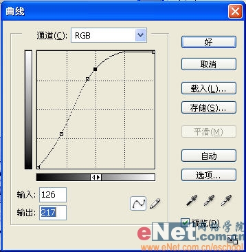 3、選擇菜單欄中的“圖像”“調(diào)整”“曲線”命令,在彈出的“曲線”對話框中,將曲線設(shè)置為如圖03所示的效果,單擊好圖像效果如圖04所示。