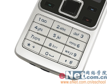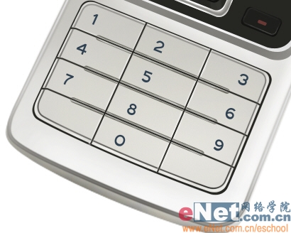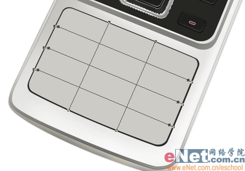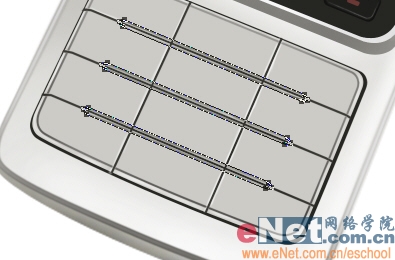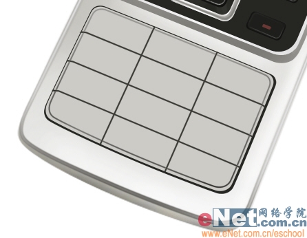 13.將黑色的部分復制一份并縮小用曲線工具調整為亮灰色做為鍵面,然后用鋼筆工具勾出按鍵之間的細縫,如下圖所示: