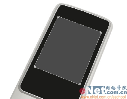 5.同樣的用圓角矩形工具結合自由變換工具制作出屏幕,并填充亮一些的灰色,如下圖所示: