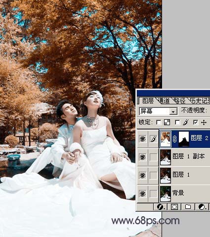 1.打開原圖按ctrl + j復制一層,選擇菜單:圖像 > 模式 > lab模式,選擇不拼合圖層,點通道面板,選擇b通道按ctrl + a全選,按ctrl + c復制,點a通道按ctrl + v粘貼,回到圖層棉版,選擇菜單:圖像 > 模式 > rgb模式,效果如圖1。