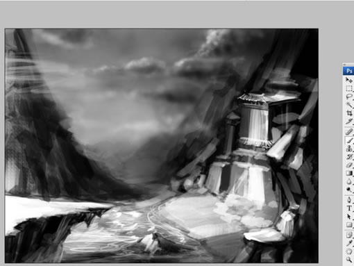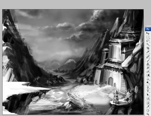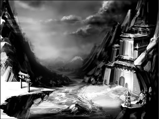 這次我們來嘗試繪制一幅依山而建的帶有中國風的城池的概念設計稿。