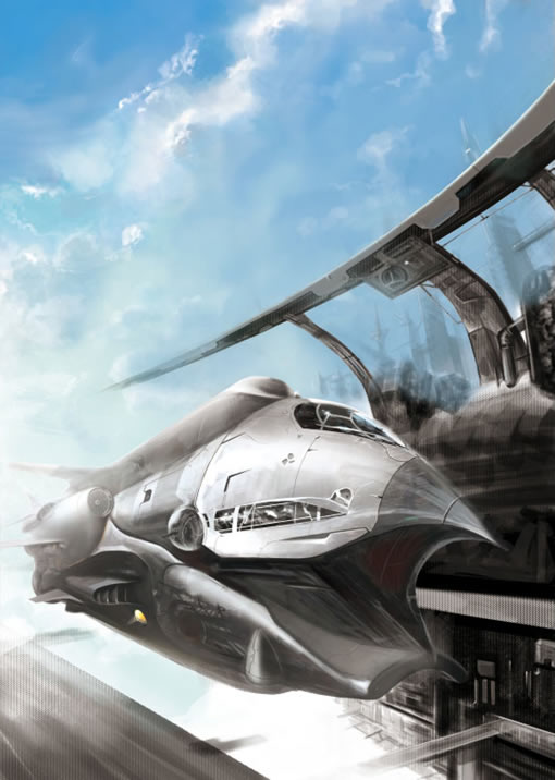 1、為了更集中于飛船的造型。我選擇先用單色進行繪制。畫出大概的透視關系和飛船的具體結構。