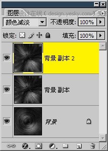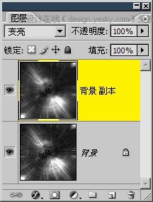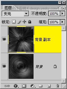總結:我們利用云彩和銅板雕刻濾鏡制作出隨機的點狀效果,然后使用徑向模糊制作出線條效果,最后利用高斯模糊和混合模式制作出光暈效果。