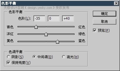 4、使用【圖像_調整_色彩平衡】,將中間調設置如下圖。