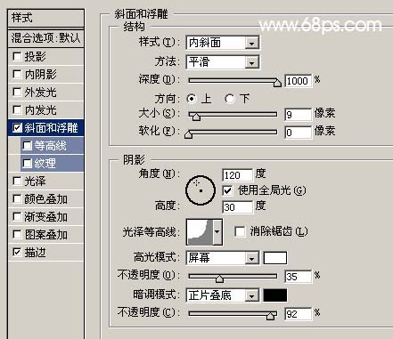 6.把除背景圖層以外的幾個圖層合并,再調出圖層樣式,參數設置如圖15,確定后完成最終效果。