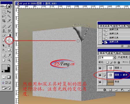 9.用加深工具對復制的圖層進行涂抹,注意光線的變化角度。