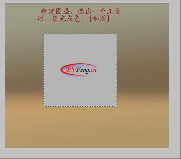 1.新建一個500 * 500像素的文件,背景適當的拉上漸變,然后新建一個圖層,用矩形選框工具繪制一個大小適當的矩形填充灰色,效果如下圖。