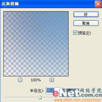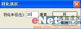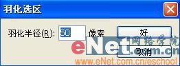 6、新建圖層4,執(zhí)行菜單欄中的“選擇”“羽化”命令,打開羽化對(duì)話框,設(shè)置羽化半徑為50,如圖06所示。設(shè)置背景色為35、40、60,按ctrl+delete填充選區(qū),圖像效果07所示。