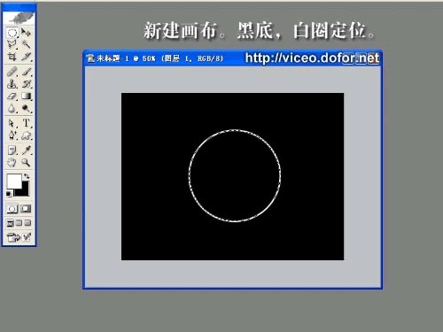 1.新建一個500 * 375像素的文件,背景填充為黑色,新建一個圖層,用橢圓選框工具繪制一個大小適度的正圓,執行菜單:編輯 > 描邊,顏色為白色,數值為2。