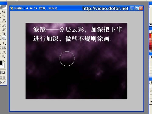 6.回到背景圖層前景顏色設置為紫色,執行菜單:濾鏡 > 渲染 > 分層云彩,選擇加深工具進行涂抹,效果如下圖