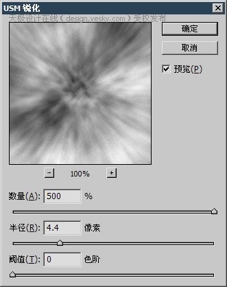 然后對其使用【濾鏡_模糊_徑向模糊】以及【濾鏡_銳化_usm銳化】,分別如下圖。