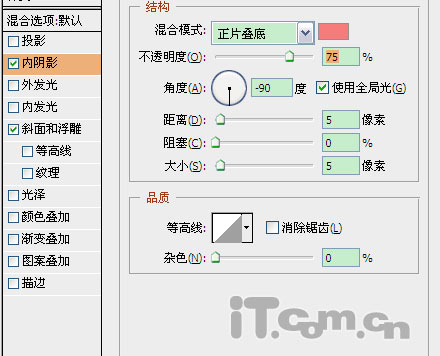 然后按圖層樣式:斜面和浮雕。參數如圖所示給圖片加立體效果: