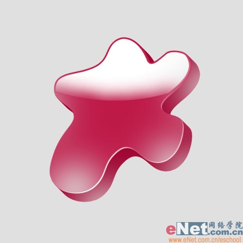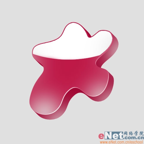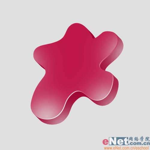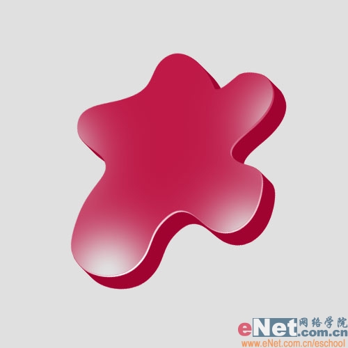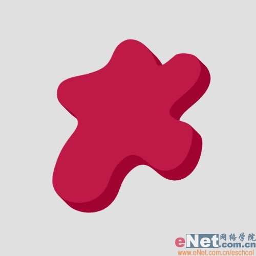 4.現在,我們來制作形狀的立體效果。首先選中形狀圖層并按住shift和alt鍵盤,然后用右手同時按下下方向鍵和右方向鍵按圖層就被自動復制了一層。再重復以上步驟,當達到了一定的厚度即可停止。然后將除最頂層以外的所有的圖層合并。現在在最頂層上按住ctrl鍵點擊該圖層載入其選區用#a00330顏色代碼進行填充。并雙擊此圖層重命名為“bottom”。