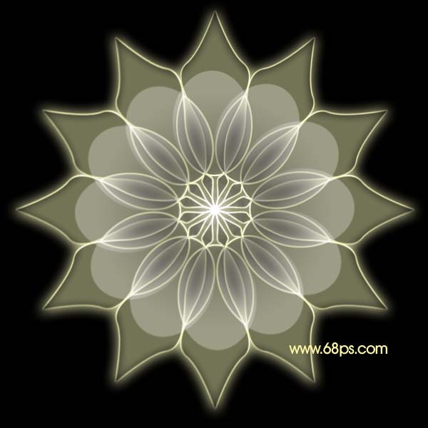 7.把隱藏的兩個(gè)圖層顯示出來,按照同樣的方法復(fù)制作出圓形效果,然后把這些描邊的圖層合并,圖層混合模式改為“疊加”效果如圖12。