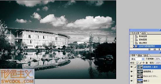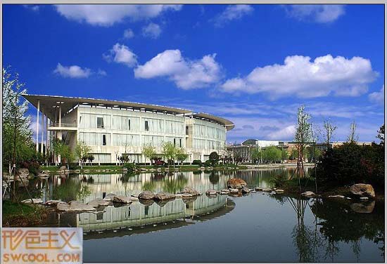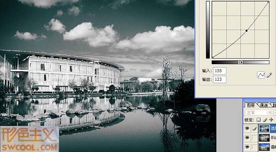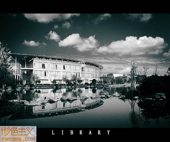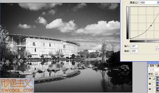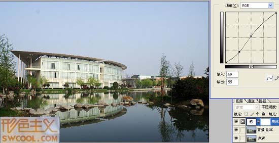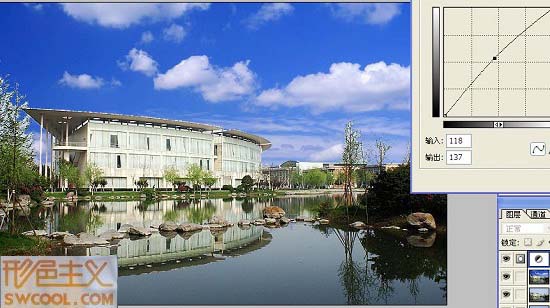 感覺圖書館中間太白太亮,進行選取拉曲線適當調(diào)暗