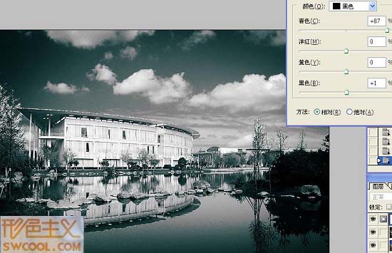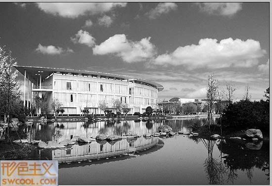 第五步,將圖片調(diào)成黑白片.方法很多,我是直接降低飽和度