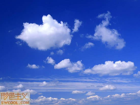 第三步將白云素材拖入.具體步驟是用魔棒對天進行選取,然后將白云拷貝粘貼入選區(qū),再進行適當自由變換
