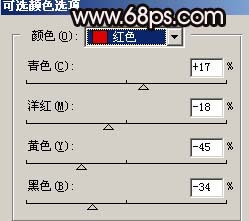 5.創建可選顏色調整圖層,參數設置如圖6,效果如圖7。