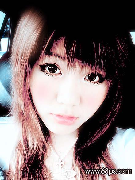 7.新建一個圖層前景顏色設置為:#fc5bc9,使用畫筆工具把人物嘴唇涂紅,把圖層混合模式改為“柔光”,再適當給人物加點腮紅效果如圖9。