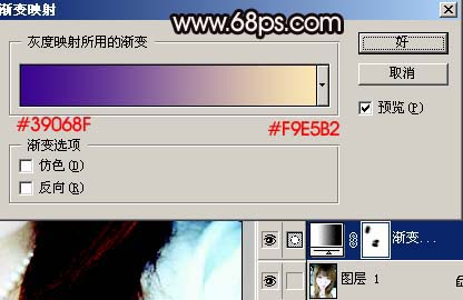 2.創建漸變映射調整圖層顏色設置如圖2,確定后把圖層混合模式改為“顏色加深”,選擇黑色畫筆工具把人物鼻子及頭發部分稍微涂一下,效果如圖3。