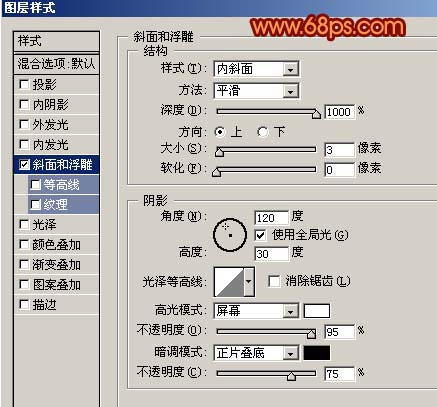 7.調(diào)出圖層樣式,參數(shù)設(shè)置如圖9,效果如圖10。
