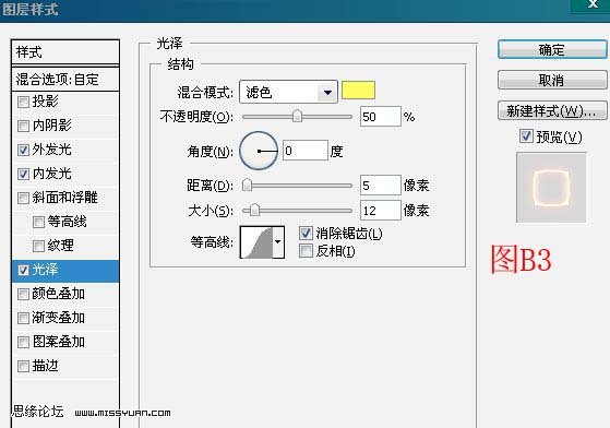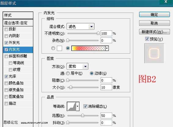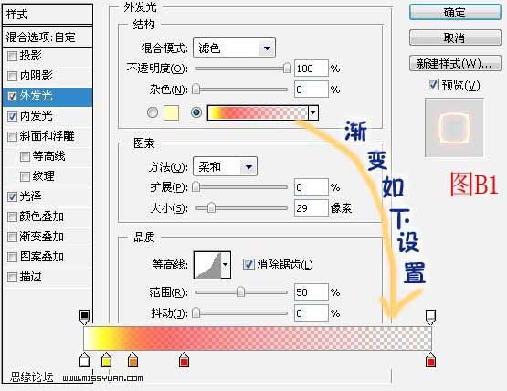 4.雙擊圖層1,條出圖層樣式,參數設置如圖b1-b3。