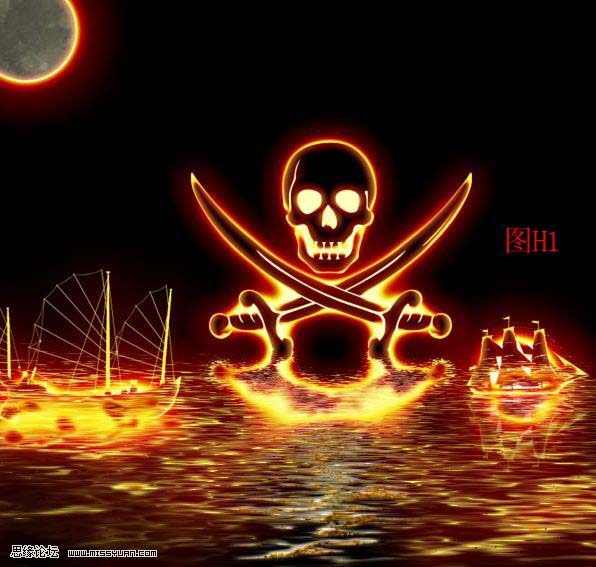 2.新建一個圖層,用形狀工具畫一個海盜的標志如圖a
