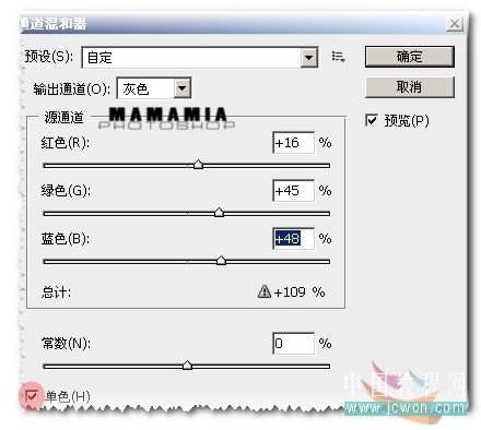 5.然后,我們執(zhí)行通道混合器,設(shè)置如圖.