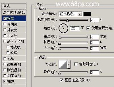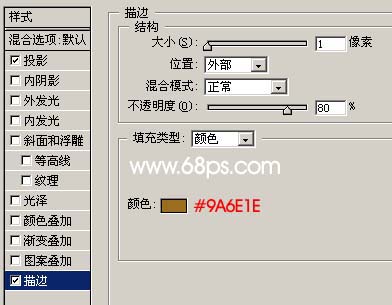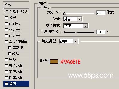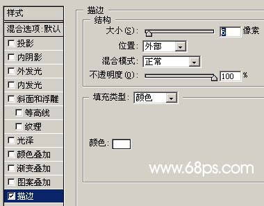 3.把圓角矩形復制一份,回到原圓角矩形這層,雙擊圖層調出圖層樣式,選擇描邊數值為6,顏色為白色如圖2,確定后新建一個空白圖層,把描邊后的圖層與空白圖層合并,再雙擊圖層調出圖層樣式,參數設置如圖3,效果如圖4。