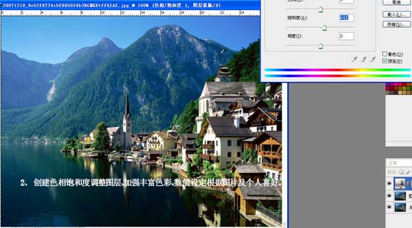 2.創(chuàng)建色相/飽和度調(diào)整圖層,適當(dāng)把飽和度的數(shù)值加大一點(diǎn)。