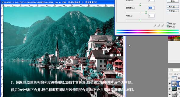 7.回到圖層面版創(chuàng)建色相/飽和度調(diào)整圖層適當(dāng)把飽和度調(diào)大一點(diǎn),然后按ctrl + e向下合并圖層。