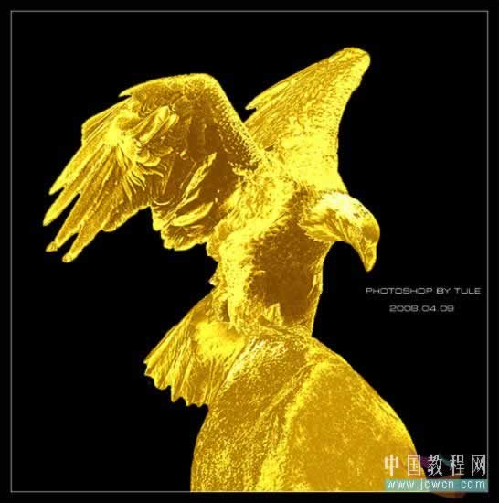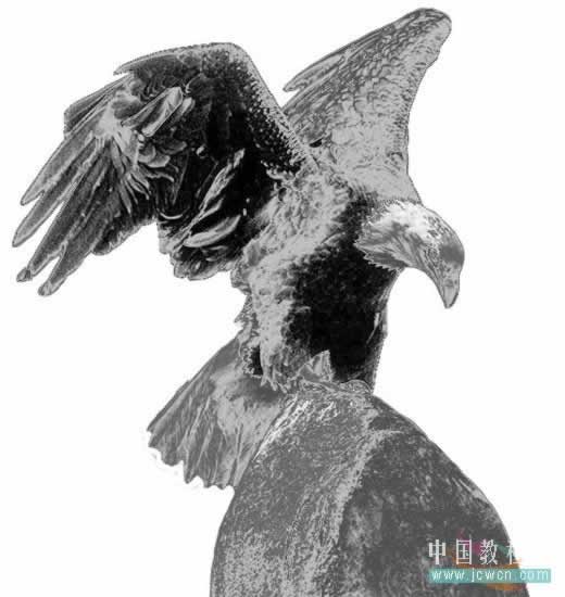 5.蓋印圖層,用魔棒工具將鷹扣出,之后進行銳化. 6.建立新圖層,填充黑色,將其放至圖層1下面,然后進行美化,完成
