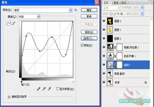 1.打開圖片-復制一層-去色. 2.進行曲線調解.如圖: