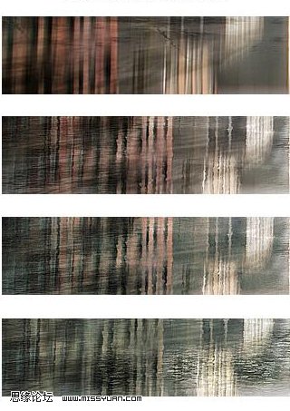 提示:這部分目的是制造水面的效果。渲染的過程要非常慎重,要達到真實的效果,就要特別注意光線和反射面。最后水面的形成要用到一系列的河流、池塘等圖片。