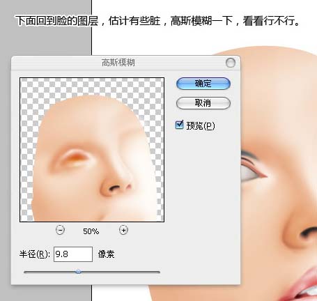 16.下面回到臉的圖層,估計有些臟,高斯模糊一下。